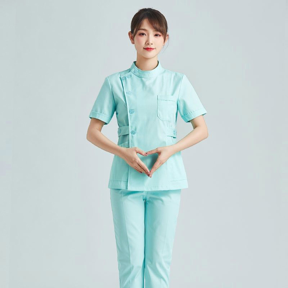 The design focuses on functionality, allowing healthcare staff to move efficiently while keeping their uniforms looking crisp. The wrap-over closure also makes it easy to put on and take off, saving time during shift changes. Available in customized sizes, these scrubs are tailored to fit different body types comfortably, ensuring that all staff members look sharp and professional.